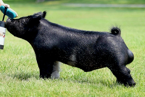 We are VERY proud to introduce this one appropriately named MIDNIGHT HAMMER!! Coming from an incredible litter and bred by one of the hottest firms in the country it should leave no doubt in your mind! We all want our showstock as bulletproof built, but also stack those important extras it takes to be noticed and win! We believe MIDNIGHT HAMMER is all of those and then some! He possess that killer look from the side in terms of his beautiful skull and neck length while being incredibly tall shouldered. Very wide pin set with awesome comfort and set to his hind leg allowing champion barrow like reach. Sexy/dense hair coat with wide, stout feet and MASSIVE legs! His mate sister has been on a heater in Iowa for the Wolfe family and we have heard nothing but positive things about her!