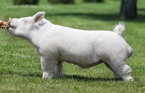 BIG TIME Yorkshire boar addition from the legend himself! One that truely exemplifies extreme quality throughout with impeccable structural integrity! He will snatch your eyes instantly from the side being so long necked, stout mugged and straight lined. Long, fluid stride with a massive hip, square hock and unreal rear leg size regardless of breed. This was one of the most fun boars to prep for photos due to his extreme hair length and density. A Yorkshire boar that has all the cool peices but built to improve the breed! We are very high on THE FIX!